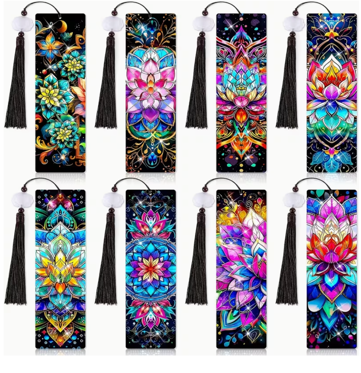 Opdag en fantastisk sampak med forskellige unikke bogmærker i diamond painting, dekoreret med farverige mandala-mønstre og smukke sommerfugle.