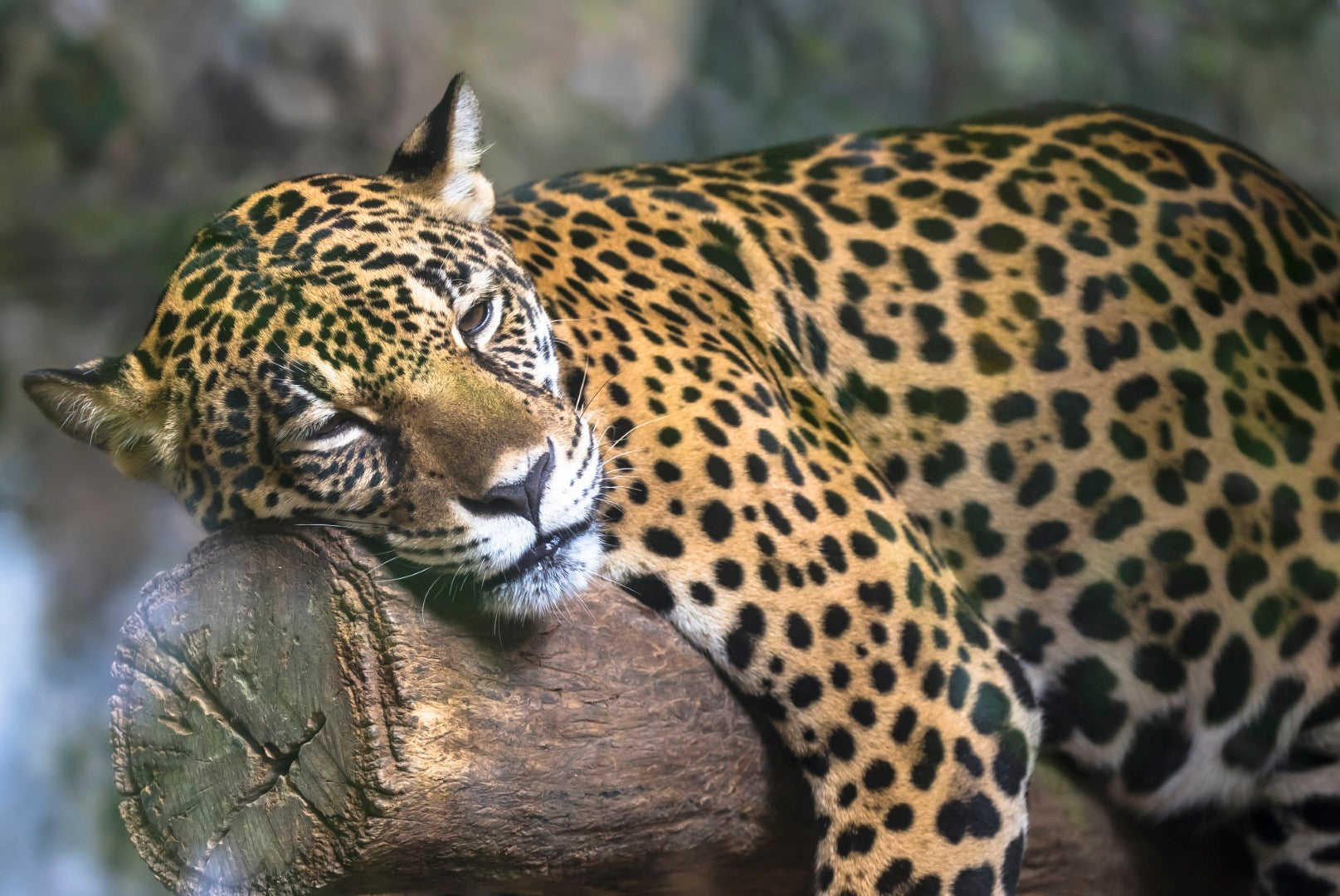 Sovende leopard på træstamme