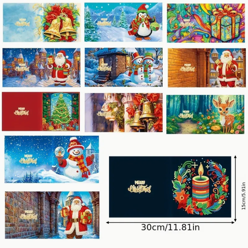 Kortene måler 30x15 ufoldet, men bliver kvadratiske (15x15 cm) ved sammenfoldning