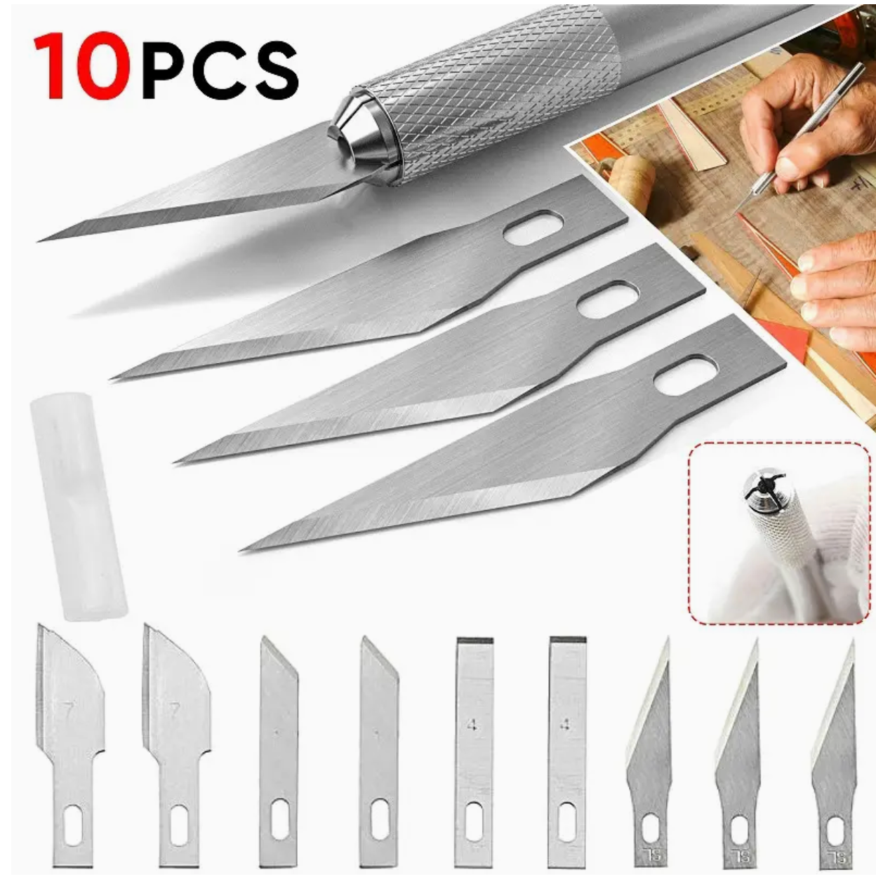 Medfølger 10 ekstra blade, så du altid har en skarp kant klar til brug. Dette gør metalskalpellen perfekt til både hobbyprojekter og professionelt arbejde.