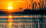 Sø med dunhammer i solopgang/solnedgang