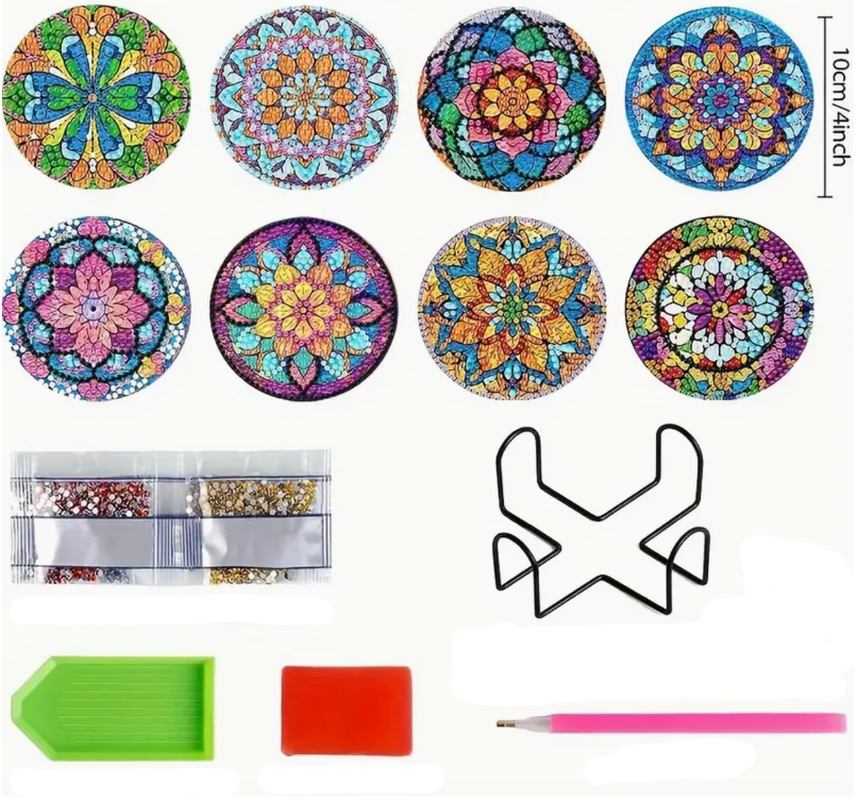 Opgrader din borddækning med et elegant bordskånersæt til drikkeglas og kopper. Sættet indeholder 8 unikke brikker med smukke mandalamønstre i skønne farver.